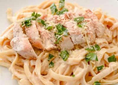 طرز تهیه پاستا آلفردو با چیکن، پنیر پیتزا و خامه