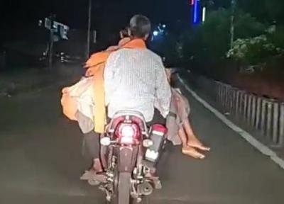 صحنه ای عجیب و دردناک از حمل جنازه یک دختر با موتورسیکلت!